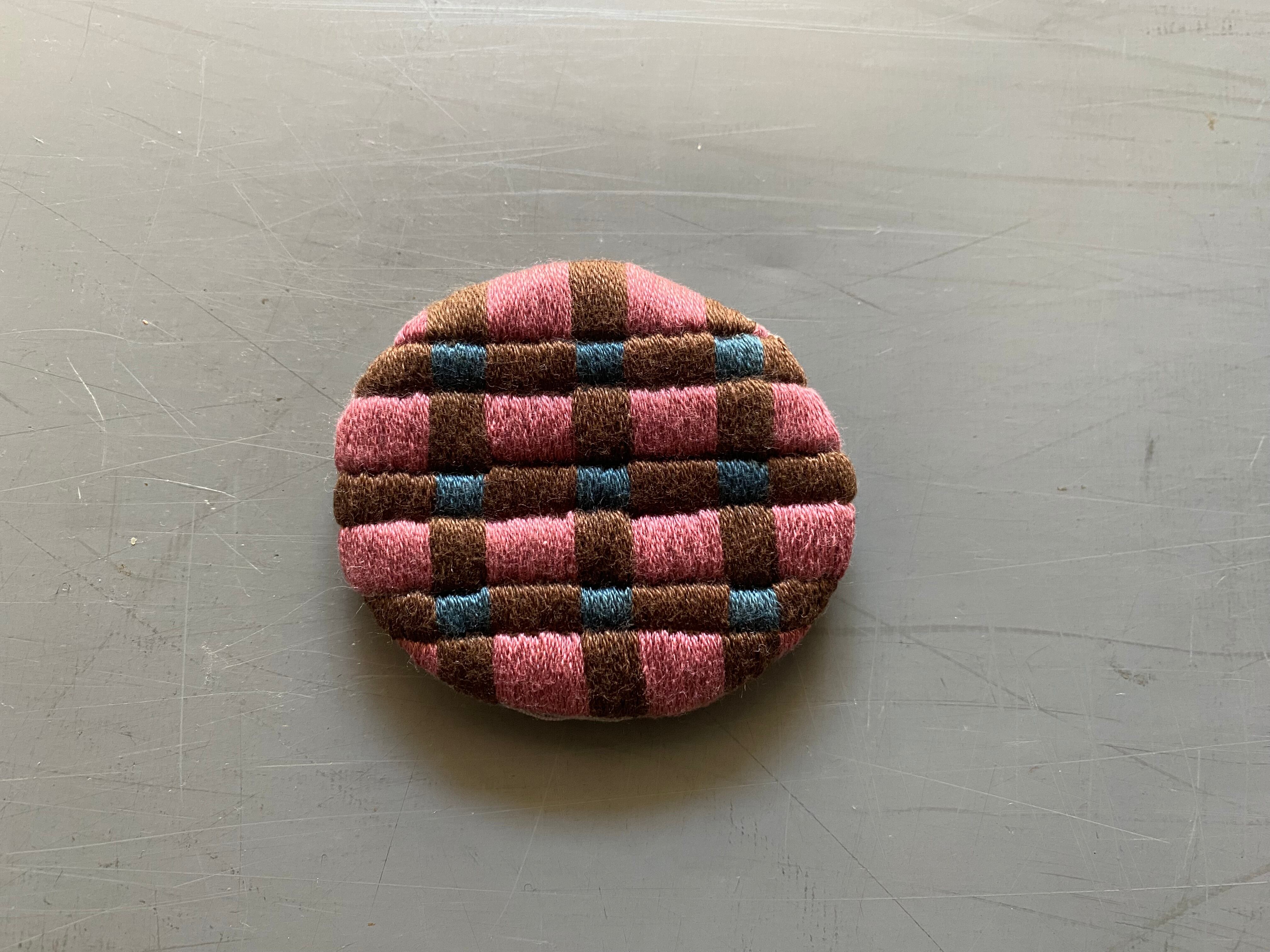 3色で組み合わせた手刺繍のブローチです