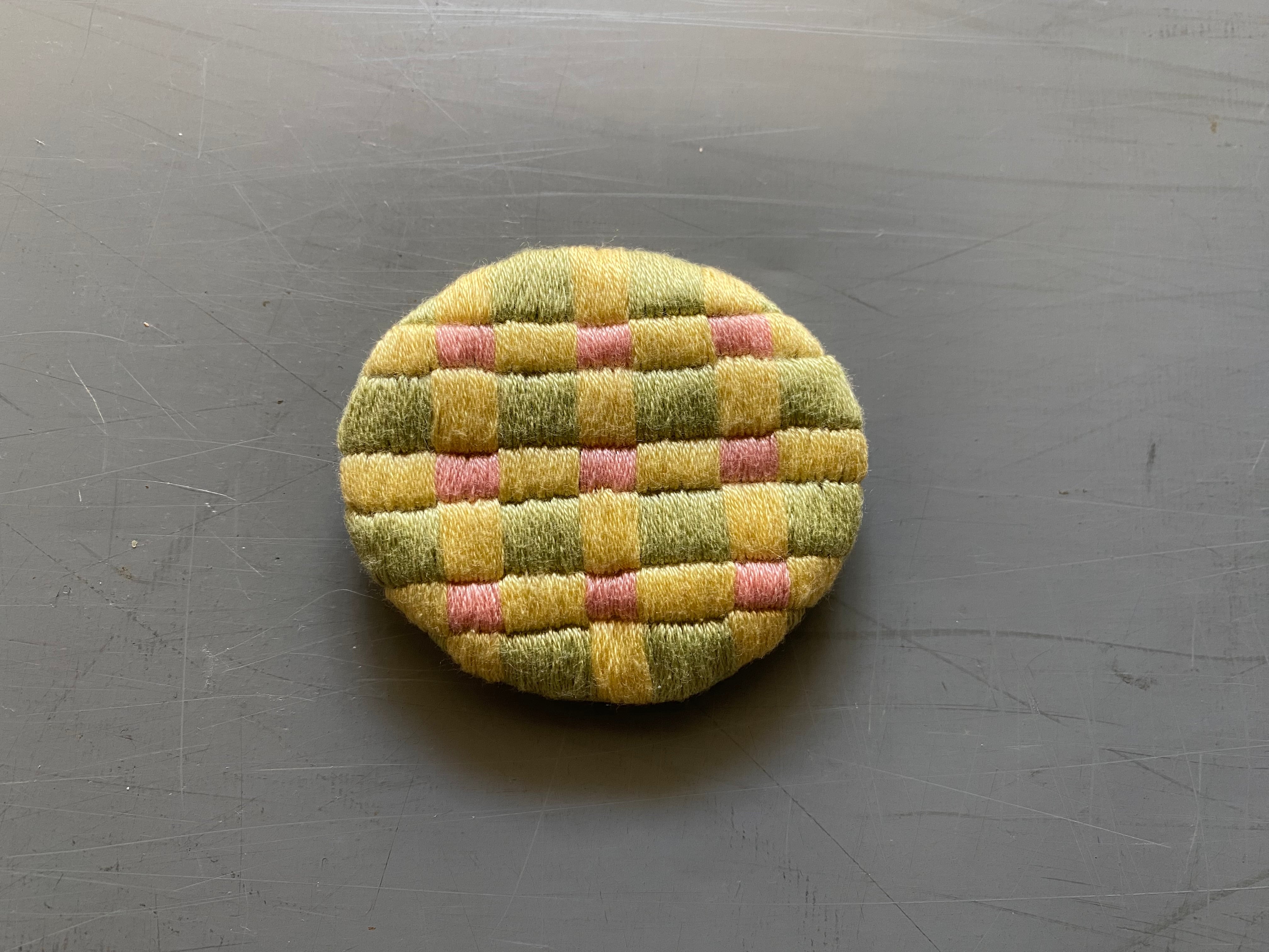 3色で組み合わせた手刺繍のブローチです