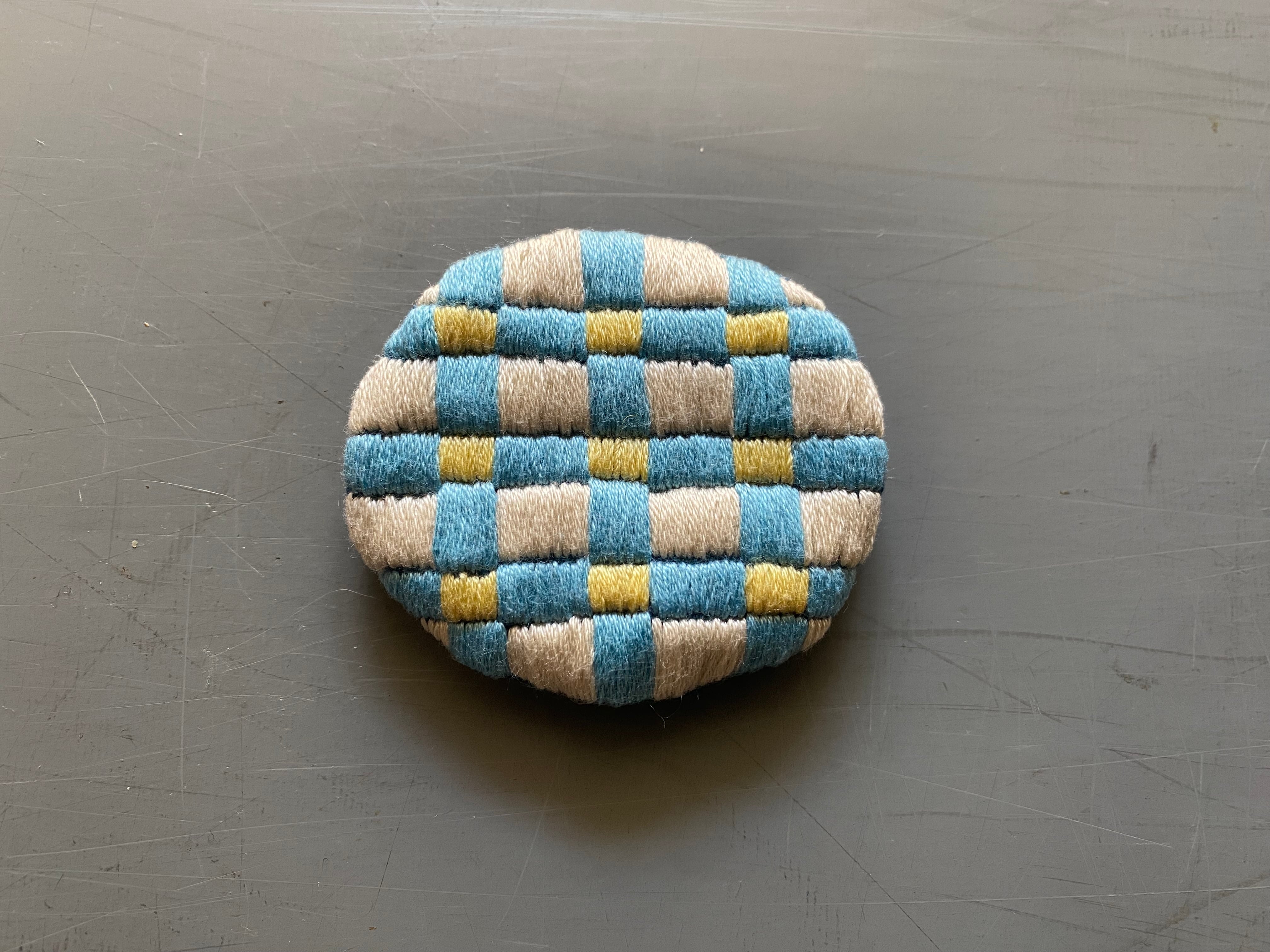 3色で組み合わせた手刺繍のブローチです